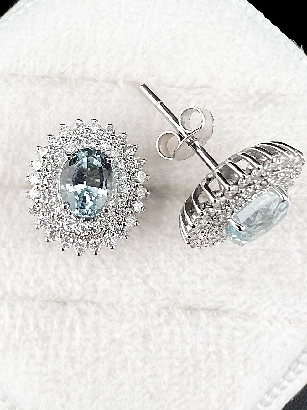 Aquamarine (1.42 ct) Earrings w/ Diamonds (0.60 ct) in 18k White Gold